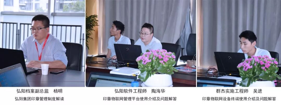 5月23-24日,群杰物联联合弘阳集团举行了印章物联网管理平台业务培训会,在弘阳集团档案管理中心杨明副总监、科技创新中心陶海华工程师以及群杰物联实施工程师的共同推进下,用印宝智能印章在弘阳集团顺利启用。
